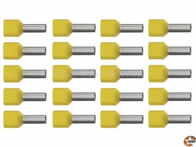 Zwillings-Aderendhülsen mit Kragen für 2x6mm² gelb