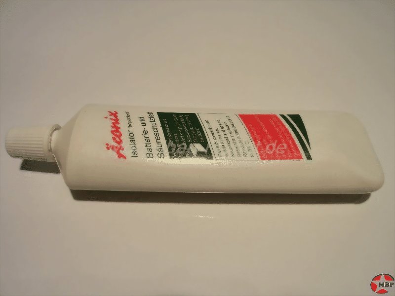 Äronix Isolator „tropenfest“ bildet keinen Übergangswiderstand und wird daher auch auf dem Pol und in der Klemme aufgetragen.