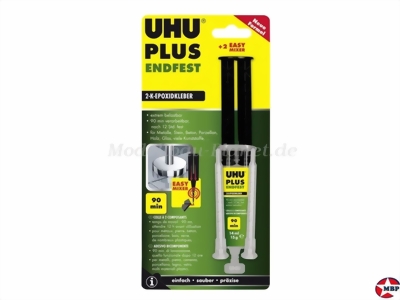 Zweikomponenten-Klebstoff auf Epoxidharzbasis für höchste Belastungen. Die Verarbeitungszeit beträgt bis zu 120 Minuten. Härtezeit und Endfestigkeit (bis zu 3000N/cm2) sind temperaturabhängig. Bei Raumtemperatur nach 12 Stunden fest. Die Klebeverbindung ist schlagfest, alterungs- und feuchtigkeitsbeständig. Auch in der anwendungsfreundlichen Doppelkammer-Spritze für die einfache Ausbringung der 2 Komponenten im richtigen Mischungsverhältnis.