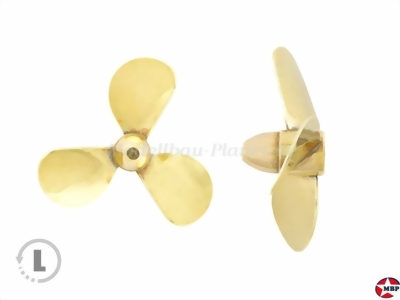 Serie: 146, Typ A Material: Messing gelötet Anzahl Blätter: 3 Drehrichtung: links Anschluss: M4 Außendurchmesser: 60mm Maximale Drehzahl: 8.000U/min Steigung: 61,5mm Nabendurchmesser x Länge: 11x22mm