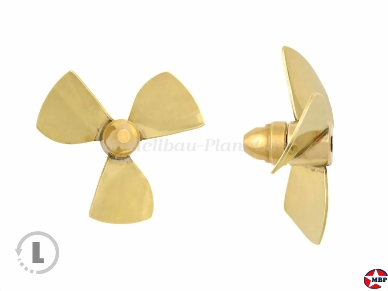 3-Blatt Schiffsschraube Form A1 Messing 30mm M4 linkslauf