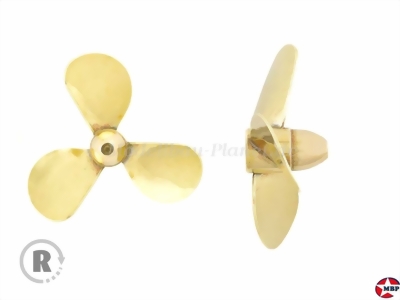 Serie: 146, Typ A Material: Messing gelötet Anzahl Blätter: 3 Drehrichtung: rechts Anschluss: M4 Außendurchmesser: 65mm Maximale Drehzahl: 6.600U/min Steigung: 66,6mm Nabendurchmesser x Länge: 11x22mm