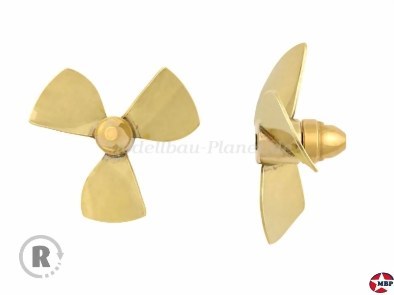 3-Blatt Schiffsschraube Form A1 Messing 100mm M5 rechtslauf