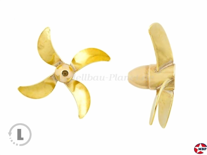 Serie: 158, Typ B Material: Messing gelötet Anzahl Blätter: 4 Drehrichtung: links Anschluss: M4 Außendurchmesser: 55mm Maximale Drehzahl: 9.600U/min Steigung: 56,4mm Nabendurchmesser x Länge: 10x18mm
