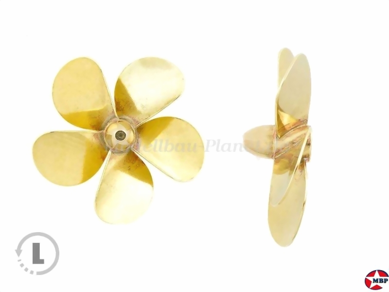 Serie: 148, Typ A Material: Messing gelötet Anzahl Blätter: 5 Drehrichtung: links Anschluss: M5 Außendurchmesser: 65mm Maximale Drehzahl: 6.600U/min Steigung: 66,6mm Nabendurchmesser x Länge: 11x22mm