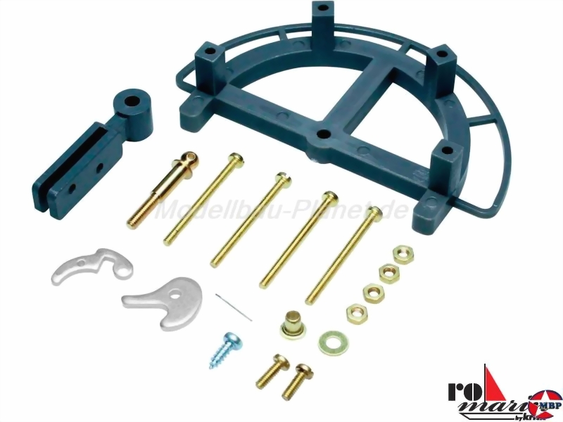 Der Schlepphaken kann mittels eines Servos (Nicht im Lieferumfang enthalten) per Funk geöffnet werden. Der Satz beinhaltet, neben einer Explosionszeichnung, alle Teile die zum Montieren des Schleppgeschirrs benötigt werden.