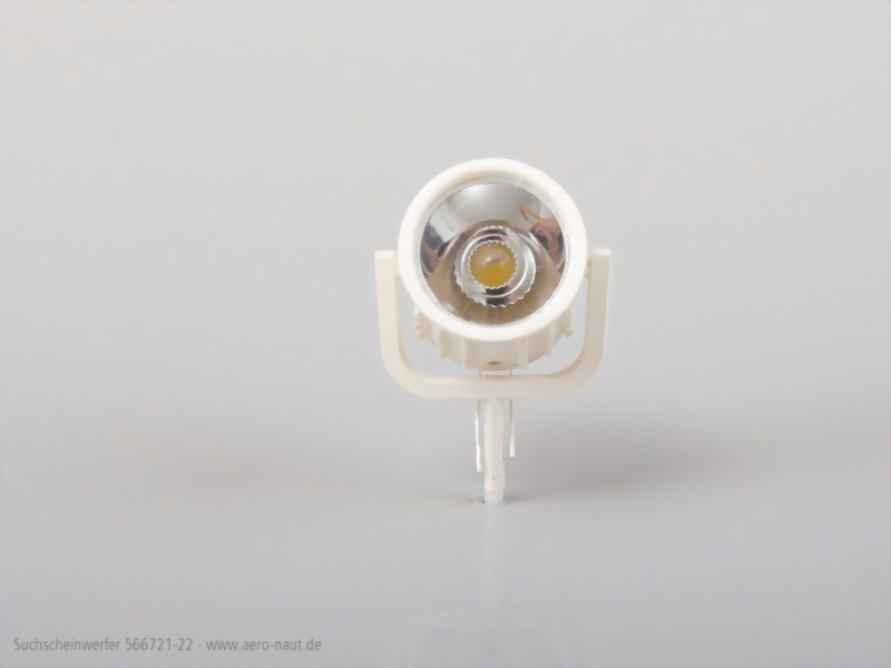 Dieser Suchscheinwerfer aus Kunststoff wird mit einem Reflektor, Glasscheibe und LED inkl. Widerständen für 3-14V Betriebsspannung geliefert. Die Kunststoffteile können gut lackiert und mit einem Tropfen Sekundenkleber fixiert werden.