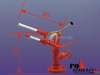 Vorbildähnliche Nachbildung einer Löschkanone, horizontal und vertikal