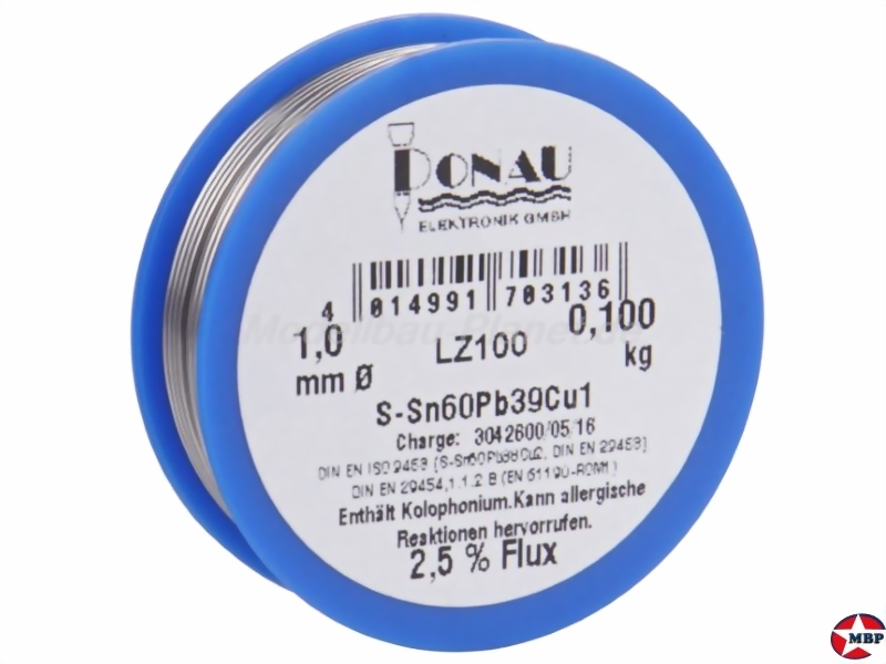 - Durchmesser: 1mm - Bleihaltig - Legierung Sn60Pb40 - 60% Zinn, 40% Blei - 2,5% Flussmittelanteil nach DIN EN 29454 - 1.1.2.B (EN 61190-ROM1) - Hochwertiger Lötdraht mit aktiviertem Harz-Flußmittel - nicht korrosiv auf NE-Metallen - schnell fließend