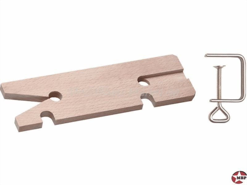 Praktische Halterung für Laubsägebögen zum Einspannen der Sägeblätter.
